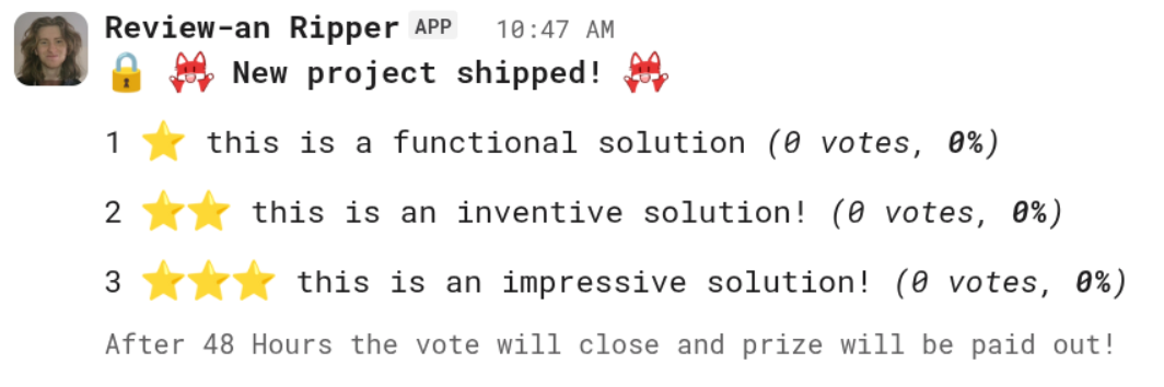 -After submission you will go up for voting in the slack. It will look like this: